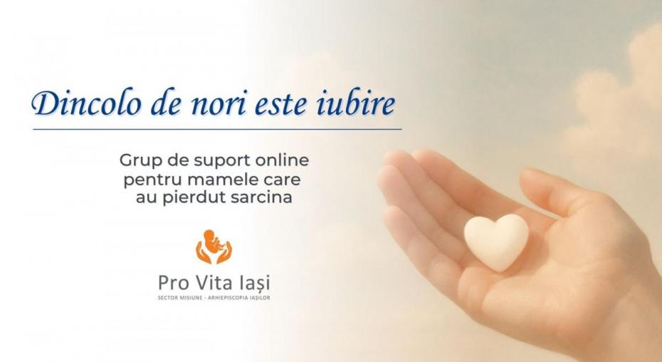 Departamentul Pro Vita va organiza, cu începere de la ora 18.00, o nouă întâlnire online a grupului de suport pentru mamele de îngeri „Dincolo de nori este iubire”. Scopul acestui grup este de a veni în sprijinul mamelor care au pierdut una sau mai multe sarcini, prin crearea unui spațiu sigur, în care acestea să își poată permite să fie vulnerabile, fără teama de a fi judecate, neînțelese sau lăsate singure în durerea lor. Întâlnirile au loc lunar, iar în luna aceasta va fi abordată tema: „Cum trăiesc pierderea de sarcină alături de partener?”. Sesiunea este ghidată de un facilitator și de un psihoterapeut. Participarea este gratuită, însă locurile sunt limitate.
